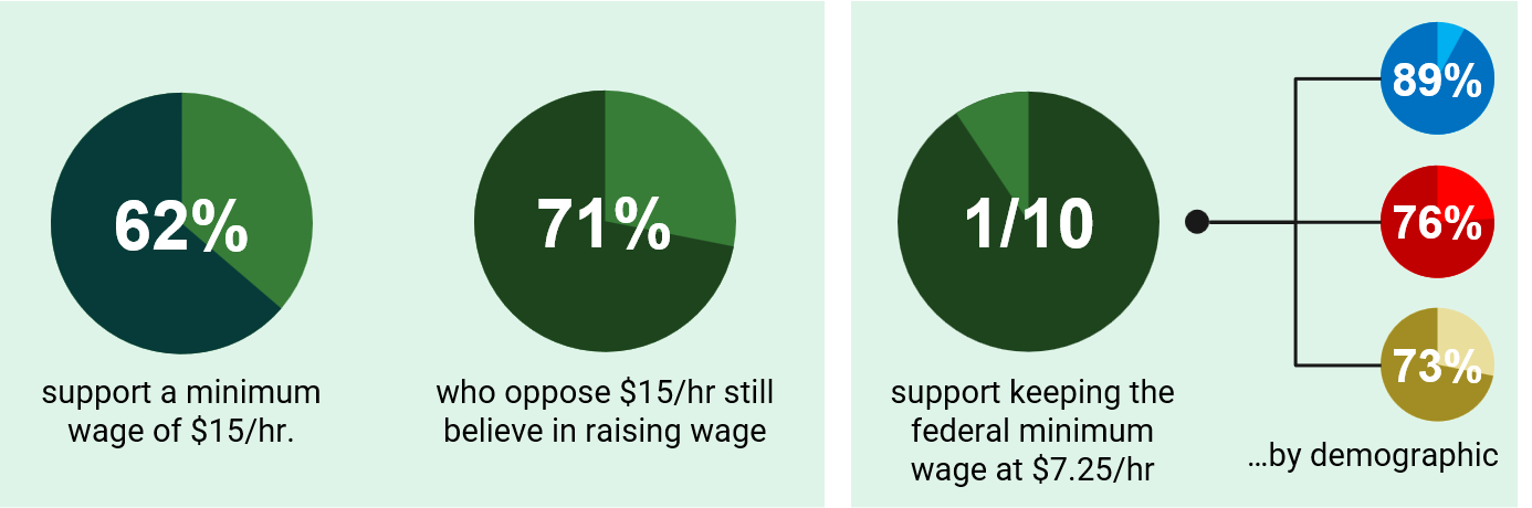 There exists strong support for higher minimum wages across the board. Fig. 4 quantifies public support for raising the wage.